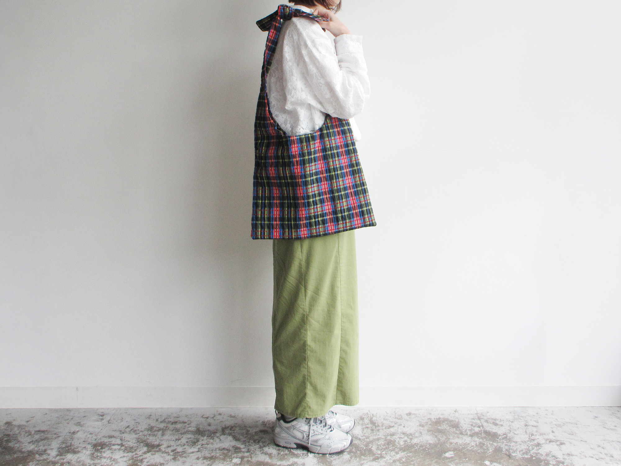 PRICE: 4,200DEL: 5SIZE: W380 * H450 (ストラップを除く)MATERIAL: CHECK: Polyester 40%, Cotton 48%, Nylon12%