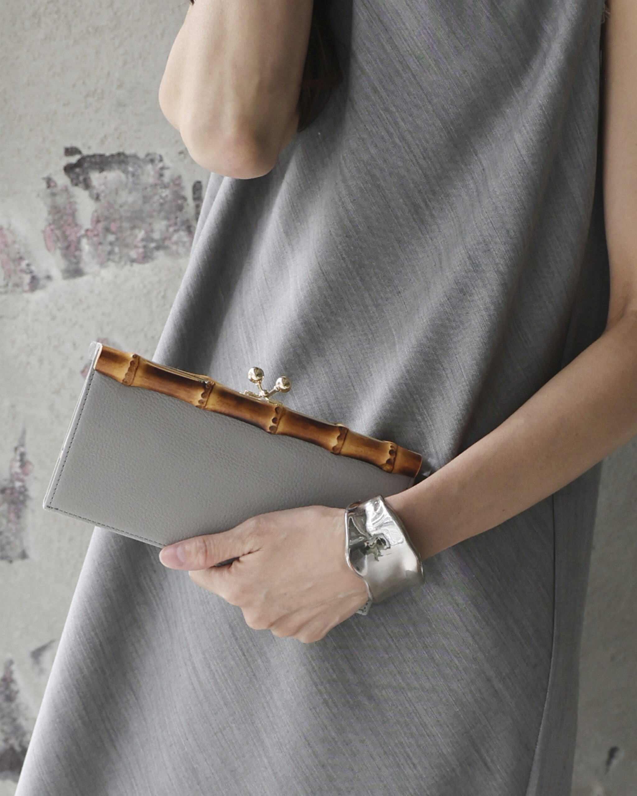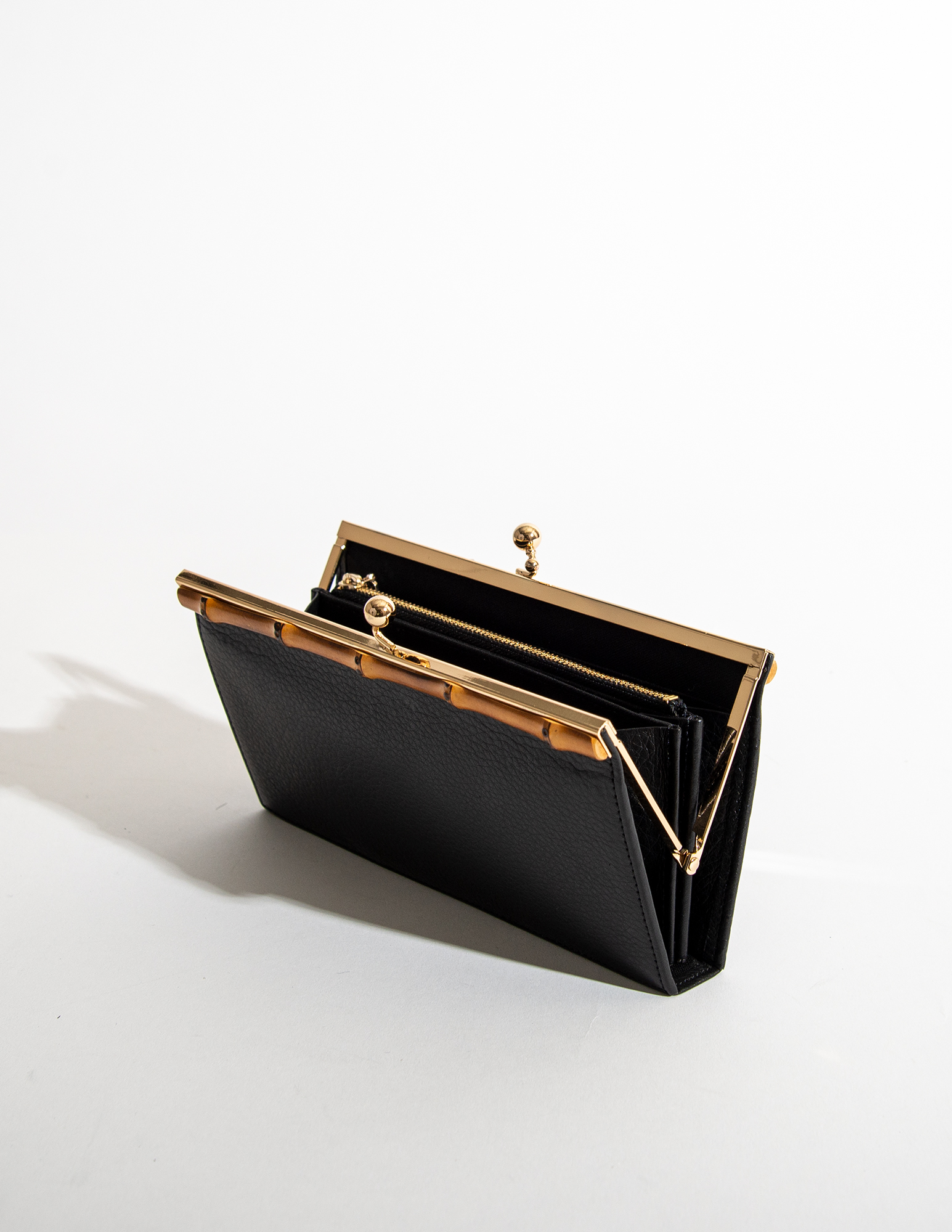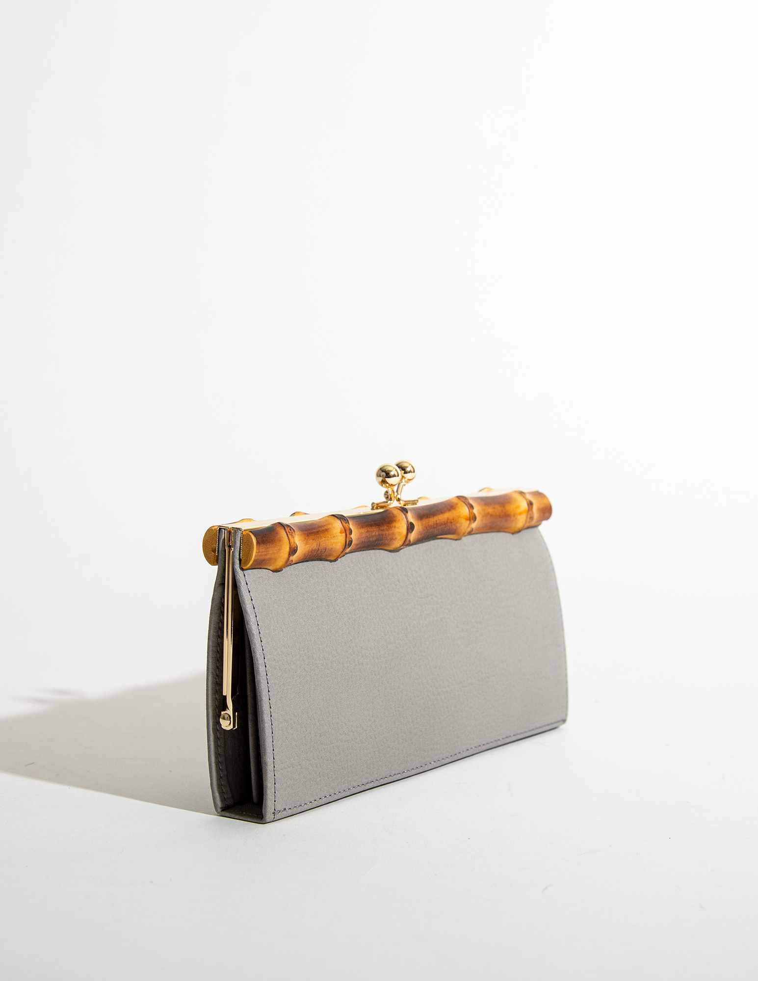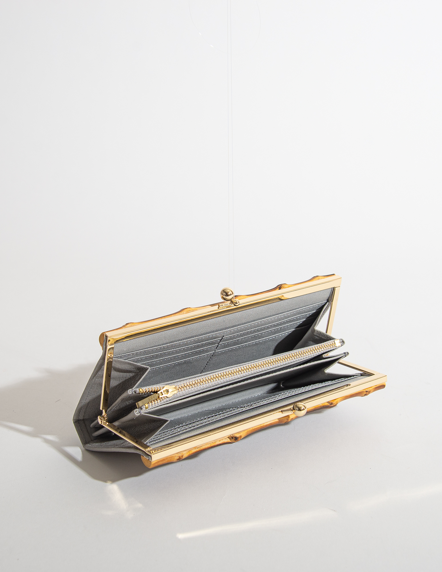 トップにバンブーをあしらったガマグチ仕様のクラシックな印象のウォレット。
