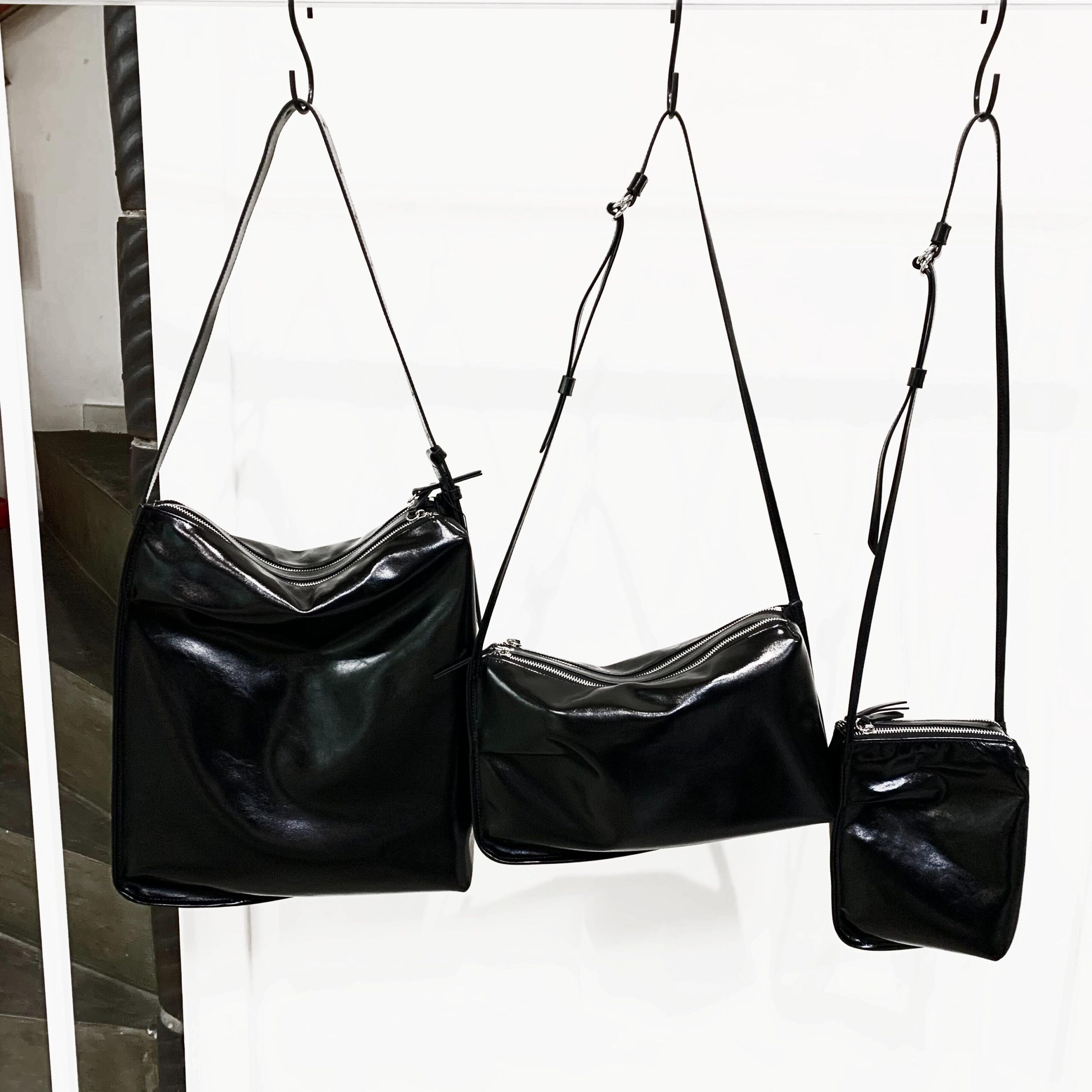バッグ正面にタックをとることにより、敢えてたわみを加え、表情のあるデザインとなっています。