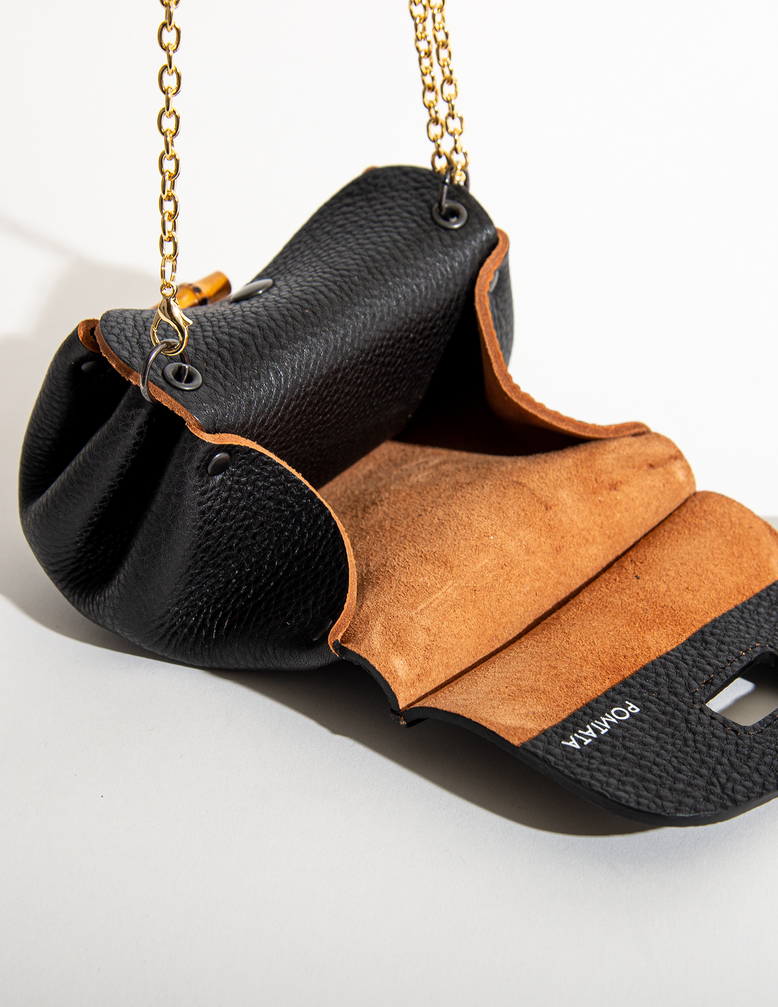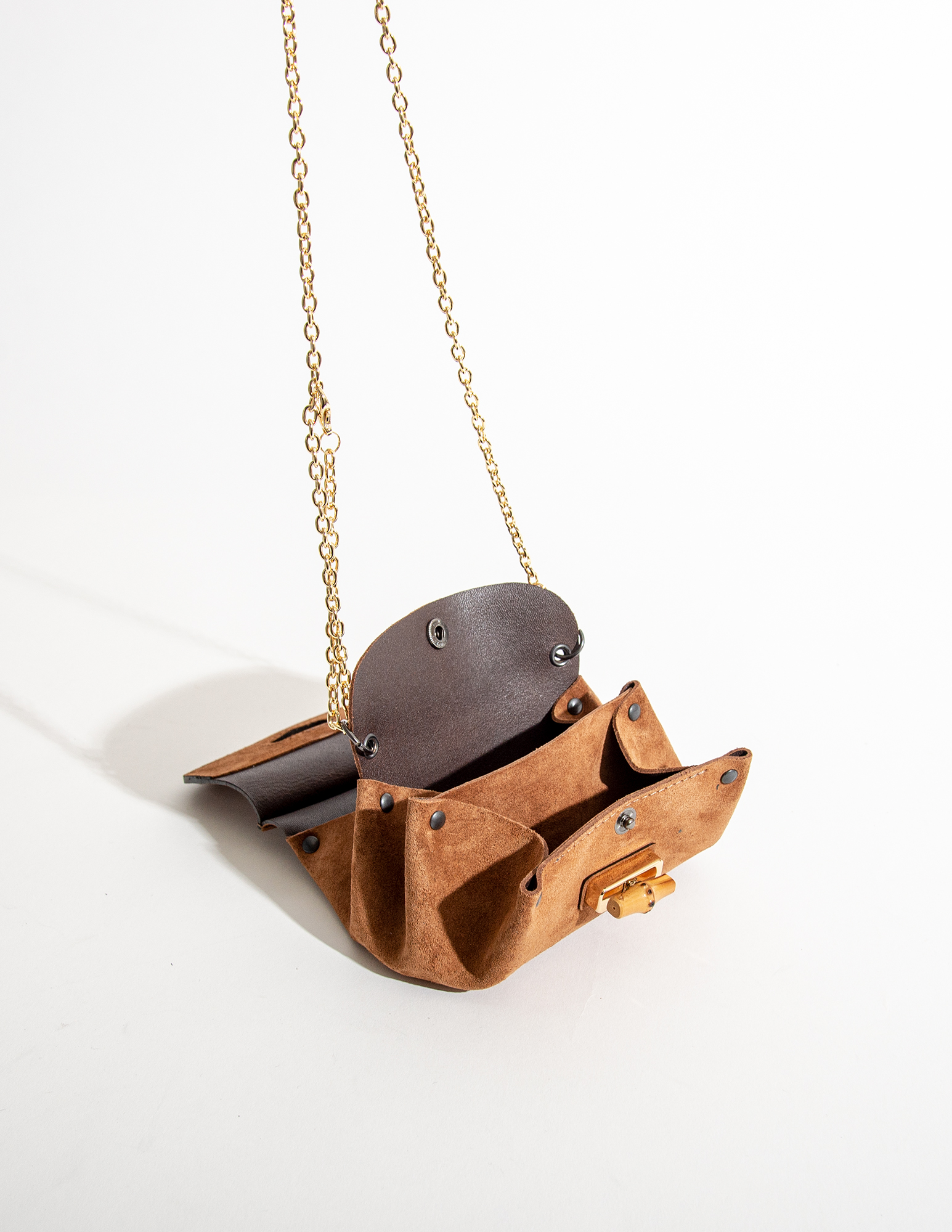 焦がし竹のヒネリがアクセントのウォレットショルダー。