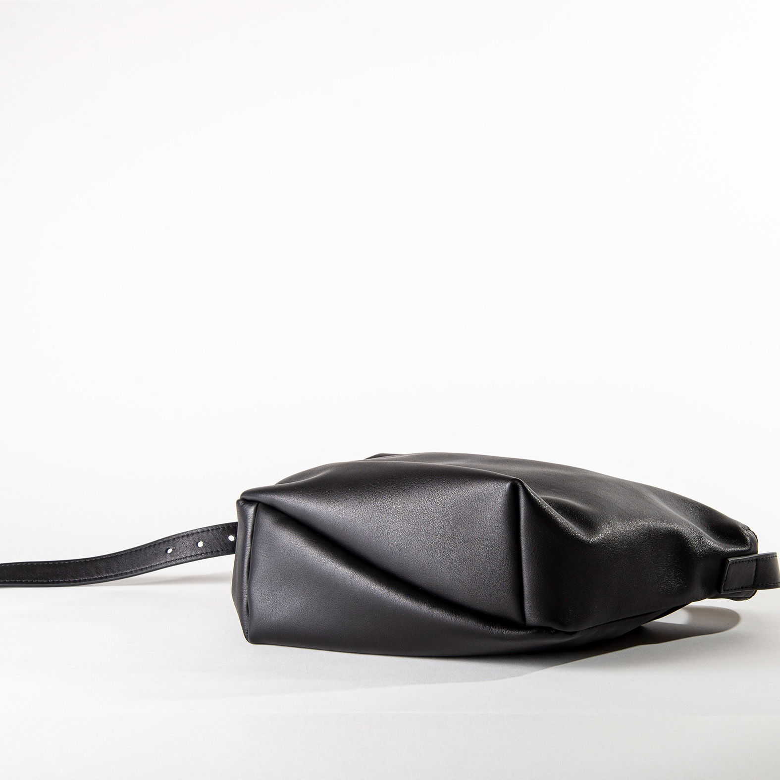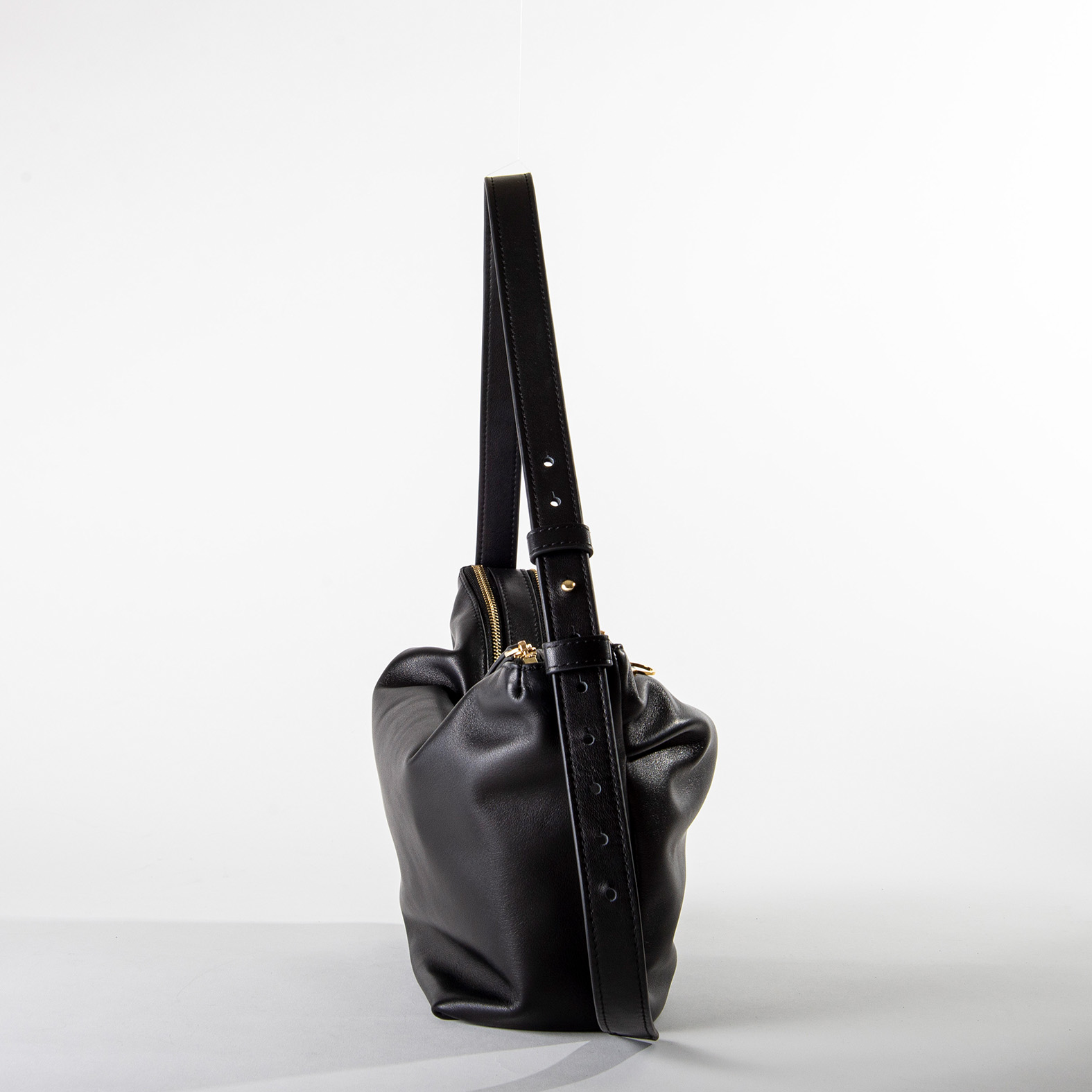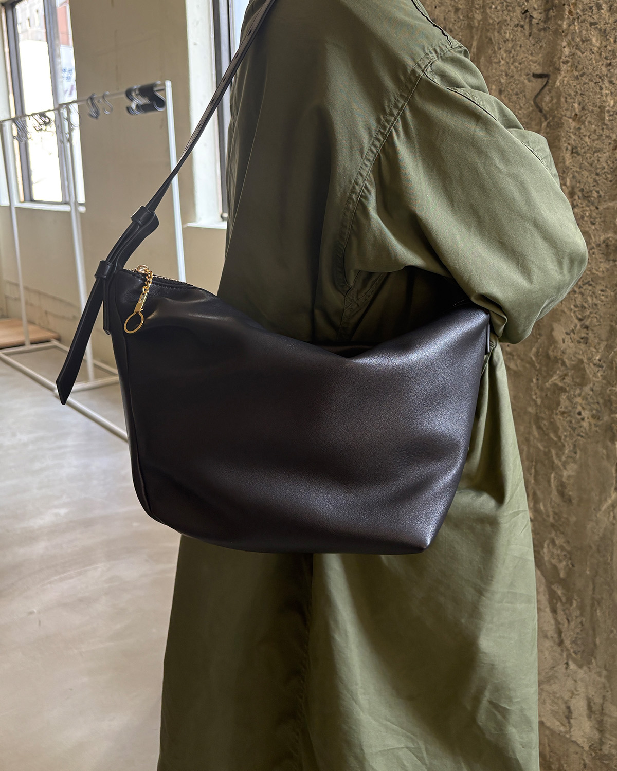 素材には、しっとりと柔らかく、クリーンな印象を与えるカウレザーを使用。モードな佇まいにやわらかさを添えます。