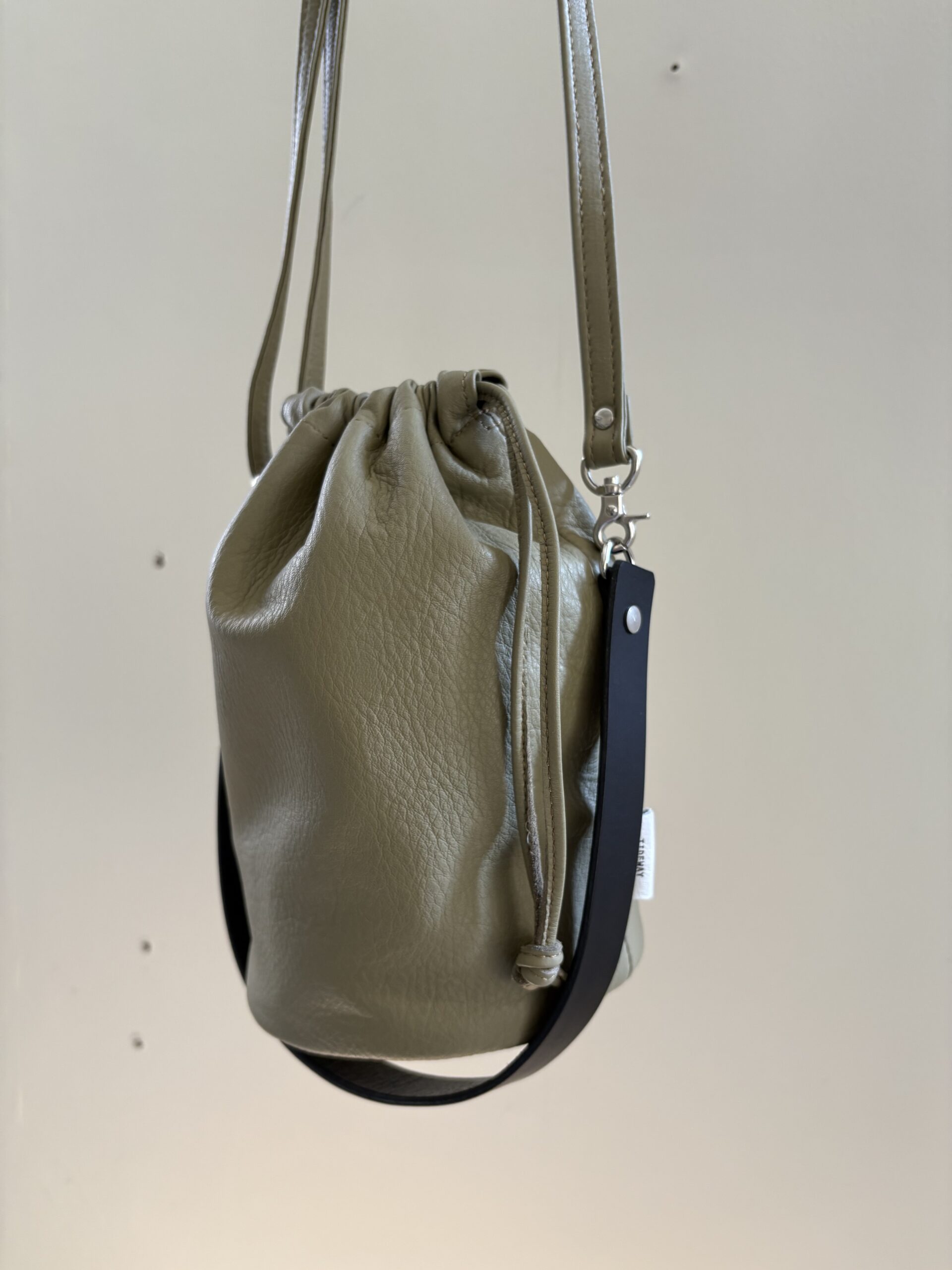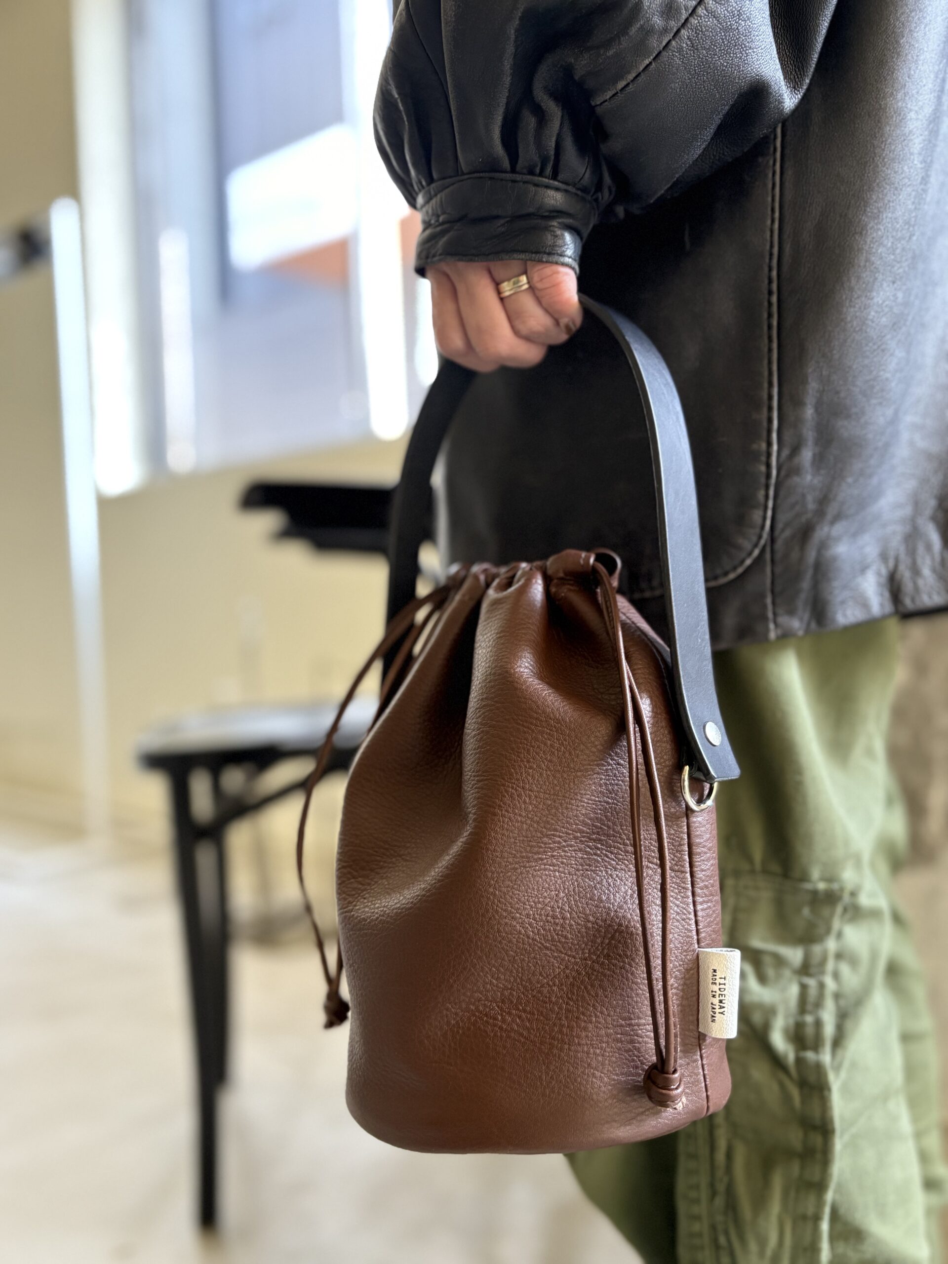 ヌメ革のハンドルは、反転させることにより、ショルダーバッグとしても使える機能とデザインを両立させました。