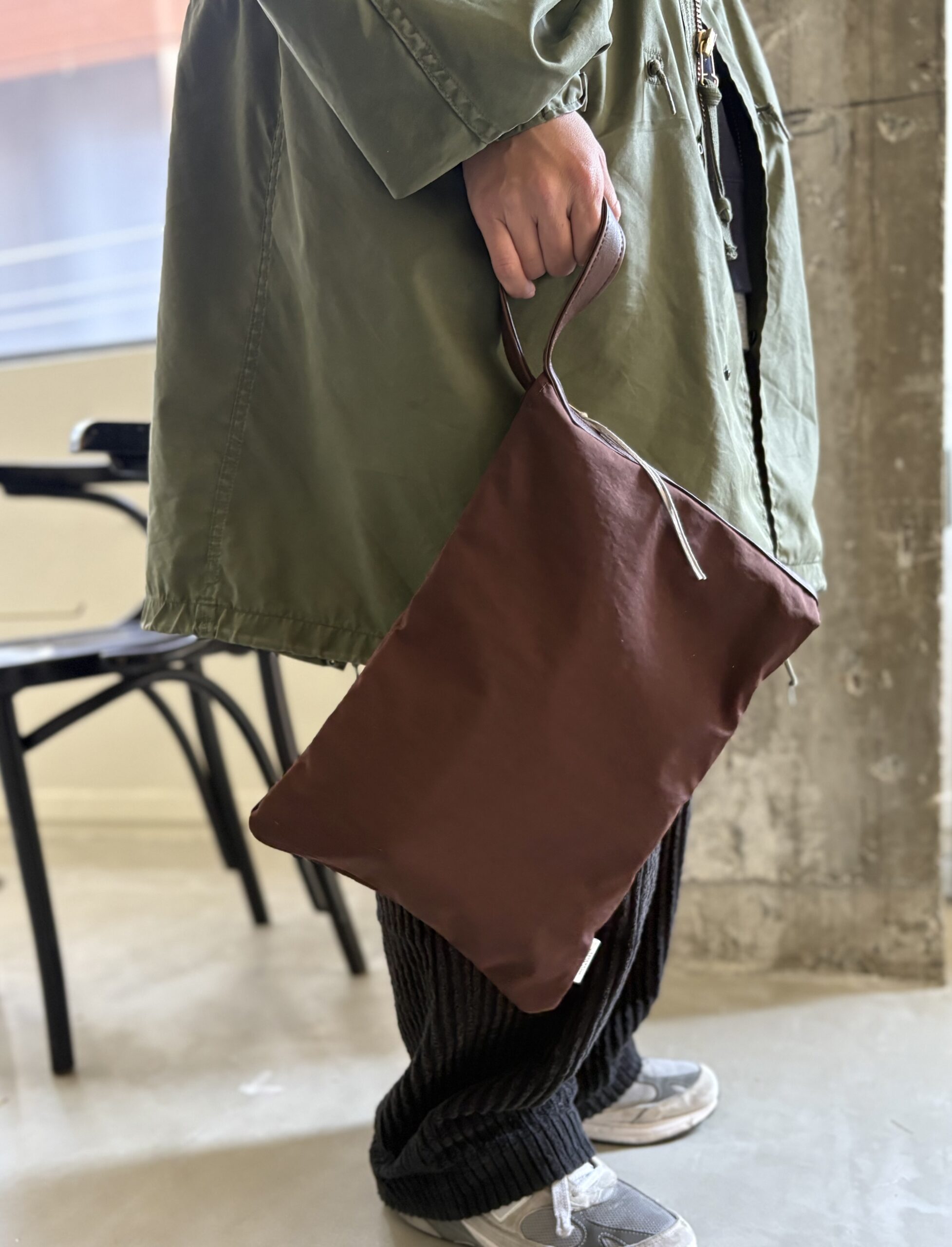 ポーチとしてはかなり大きめで、単体でクラッチとしても持てるのが特徴です。