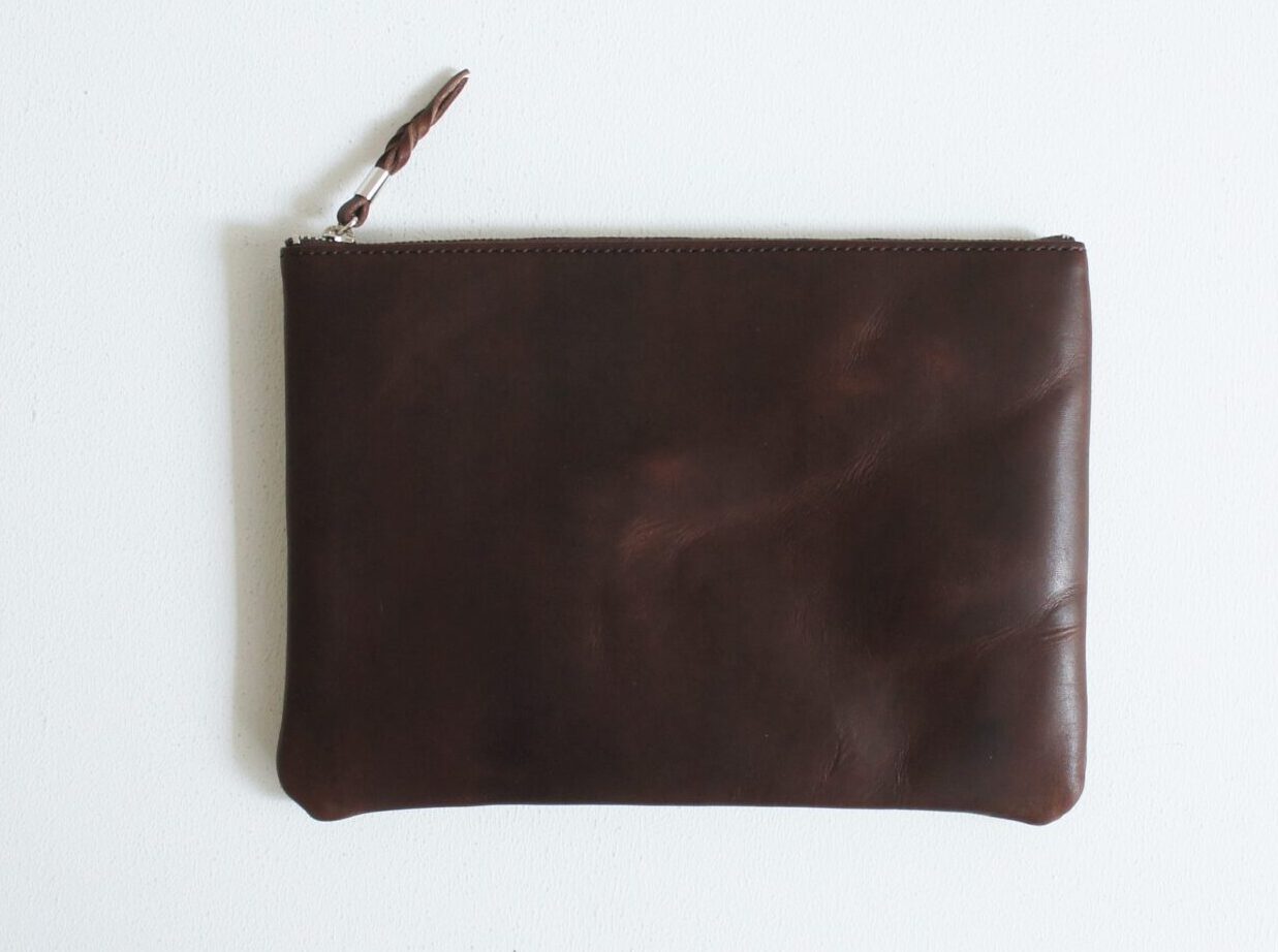 独自のオイル調整で厚みを持たせながらしなやかなレザーをつくり、表面に幾度もワックスをすり込み浸透させ、上品なツヤと深みを与えているTIDEWAY オリジナルレザーです。