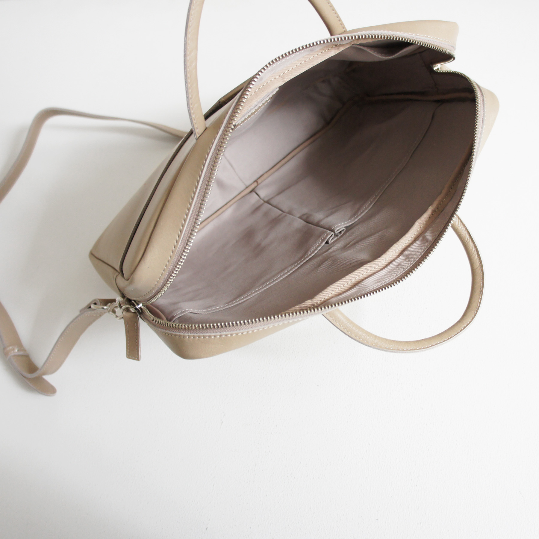 程よい光沢感や、柔らかい革を内縫いでぷっくりと丸みのあるフォルムに仕上げました。