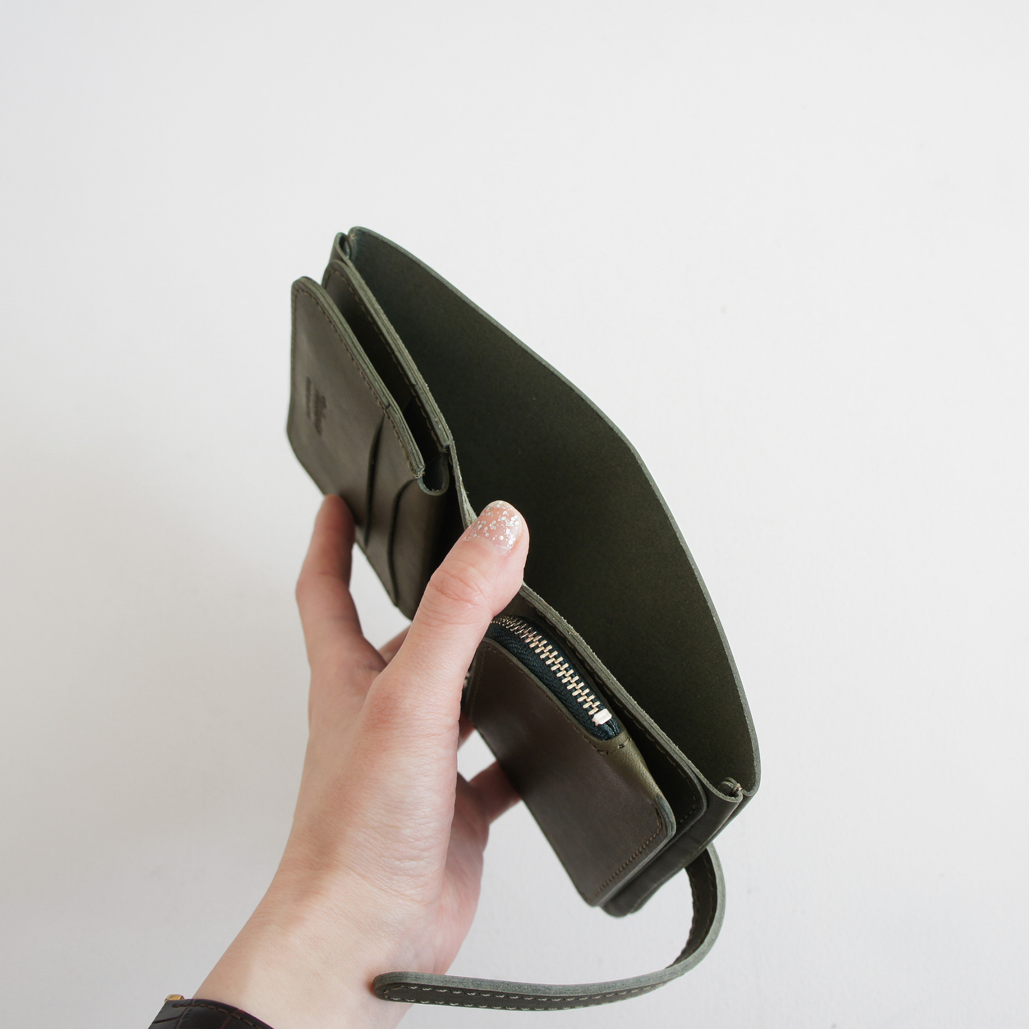 使うほどに深みの色合いと艶がでてくるオイルレザーを使用