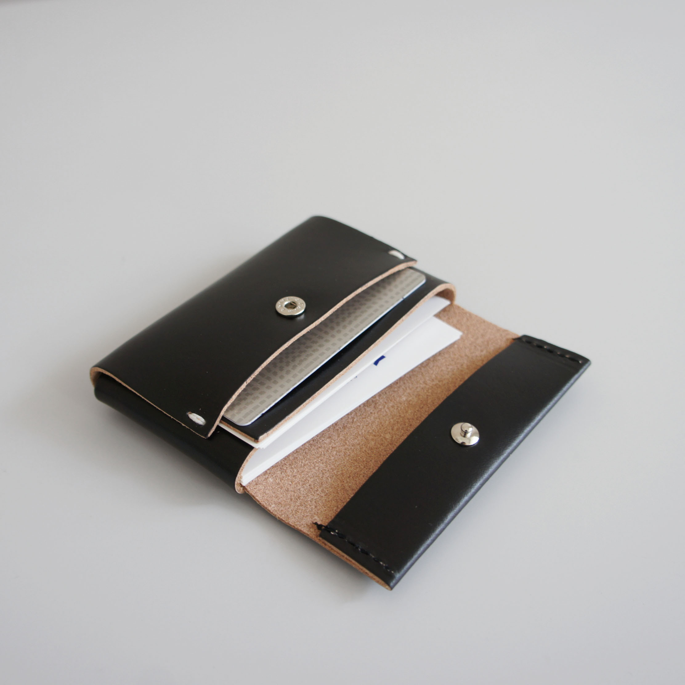 2枚のパーツをハンドステッチで縫い合わせることにより、メインポケットに3部屋、背面に1部屋と、カードを分けて保管することが可能です。