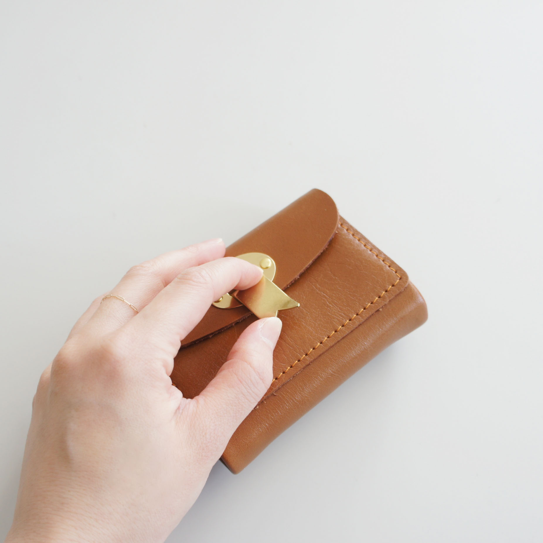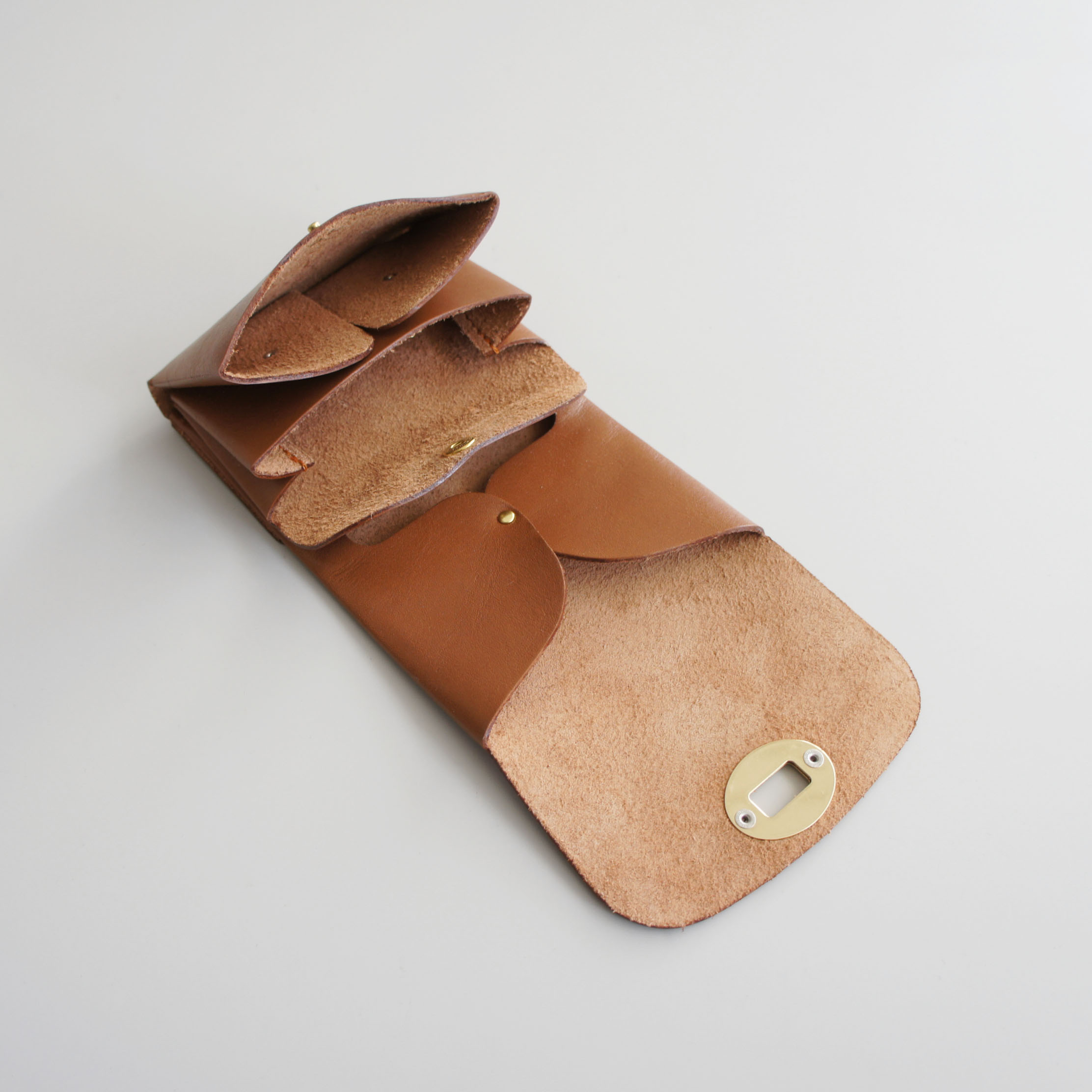オイルフィニッシュのコンビネーションで鞣した革(合成タンニン)張りとコシがありながらもオイルを染み込ませた柔らかいのが特徴