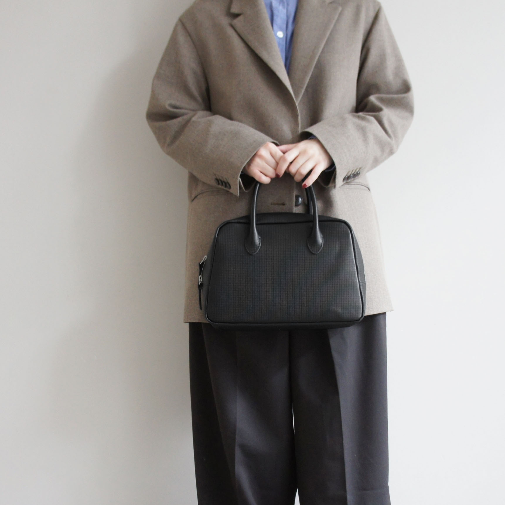 定番のMOSS シリーズにグリッドチェックの型押しをしたシリーズです。こちらは金具もシルバーに変更。同じデザインでもまた違った雰囲気を出しています。
