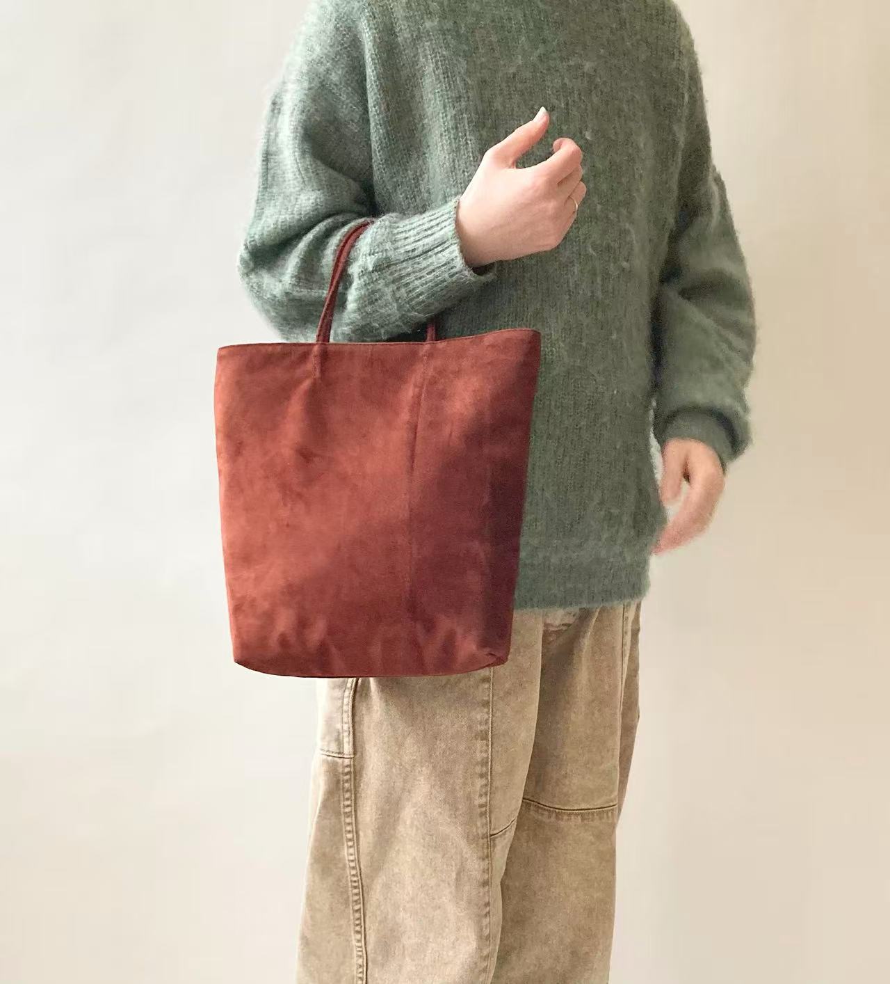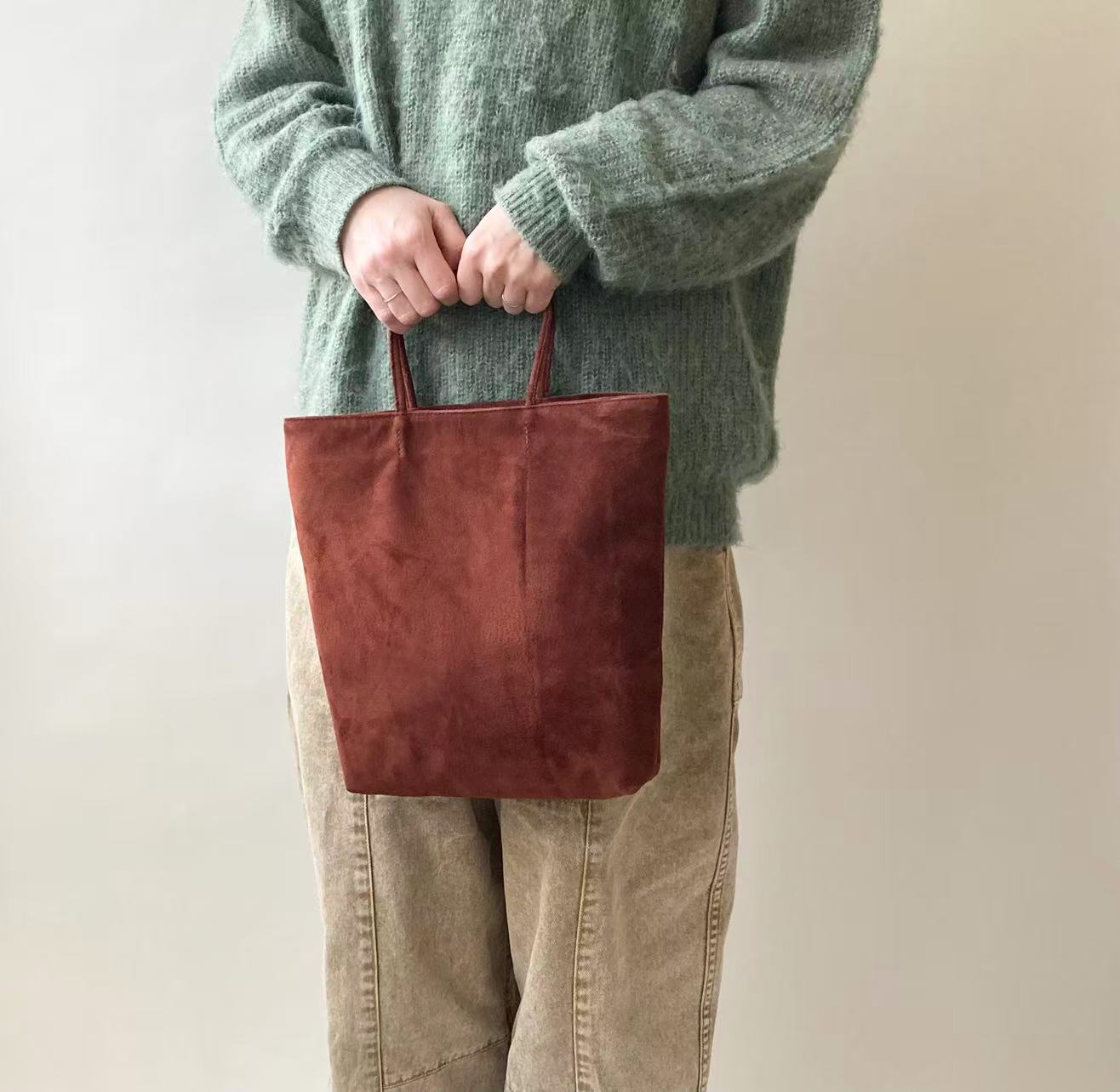 PRICE: 15,000DEL: 7SIZE: WTOP:315, BOTTOM:225 * H320 * D55MATERIAL: PIGSUEDE, LINING:NYLON&POLYURETAN