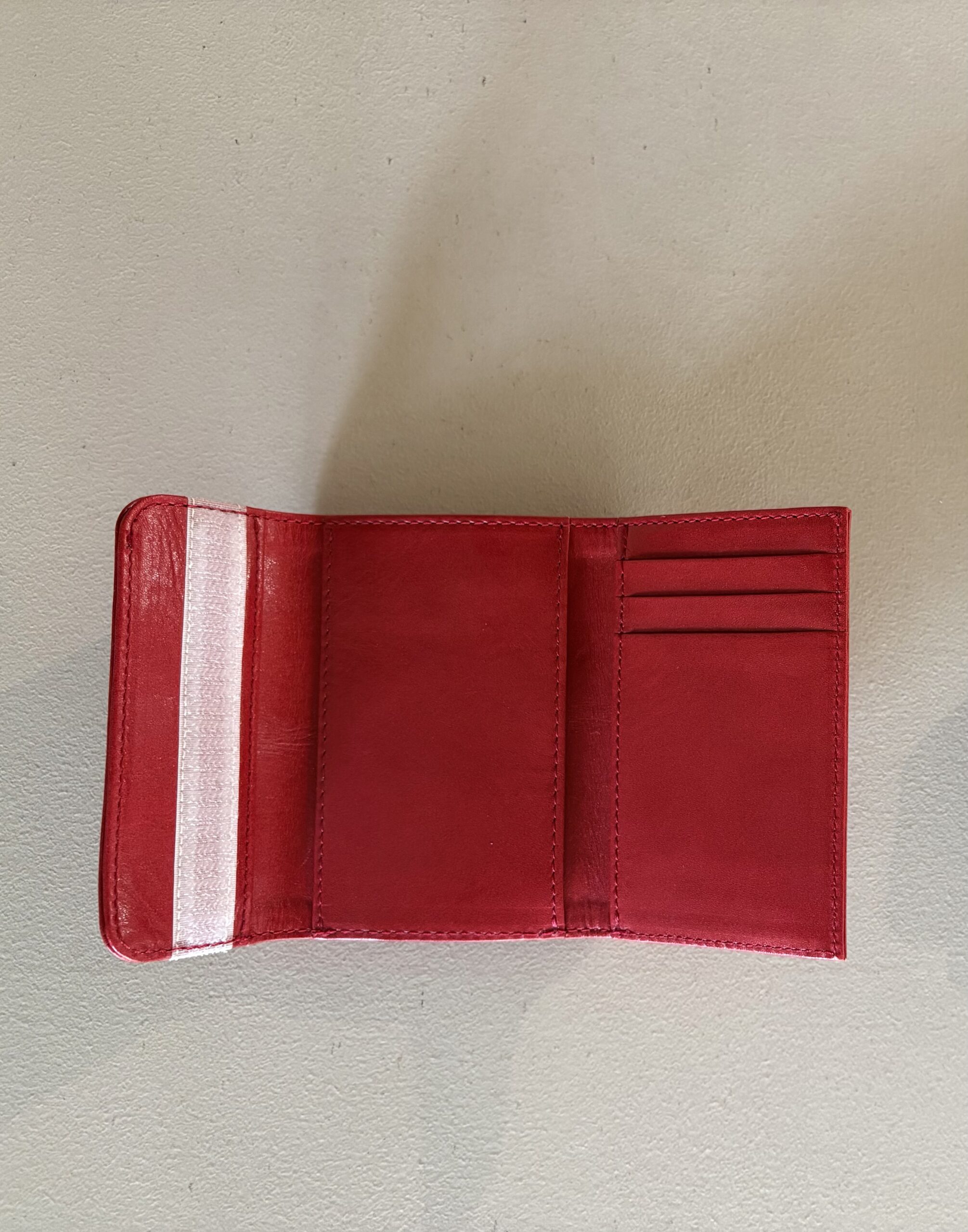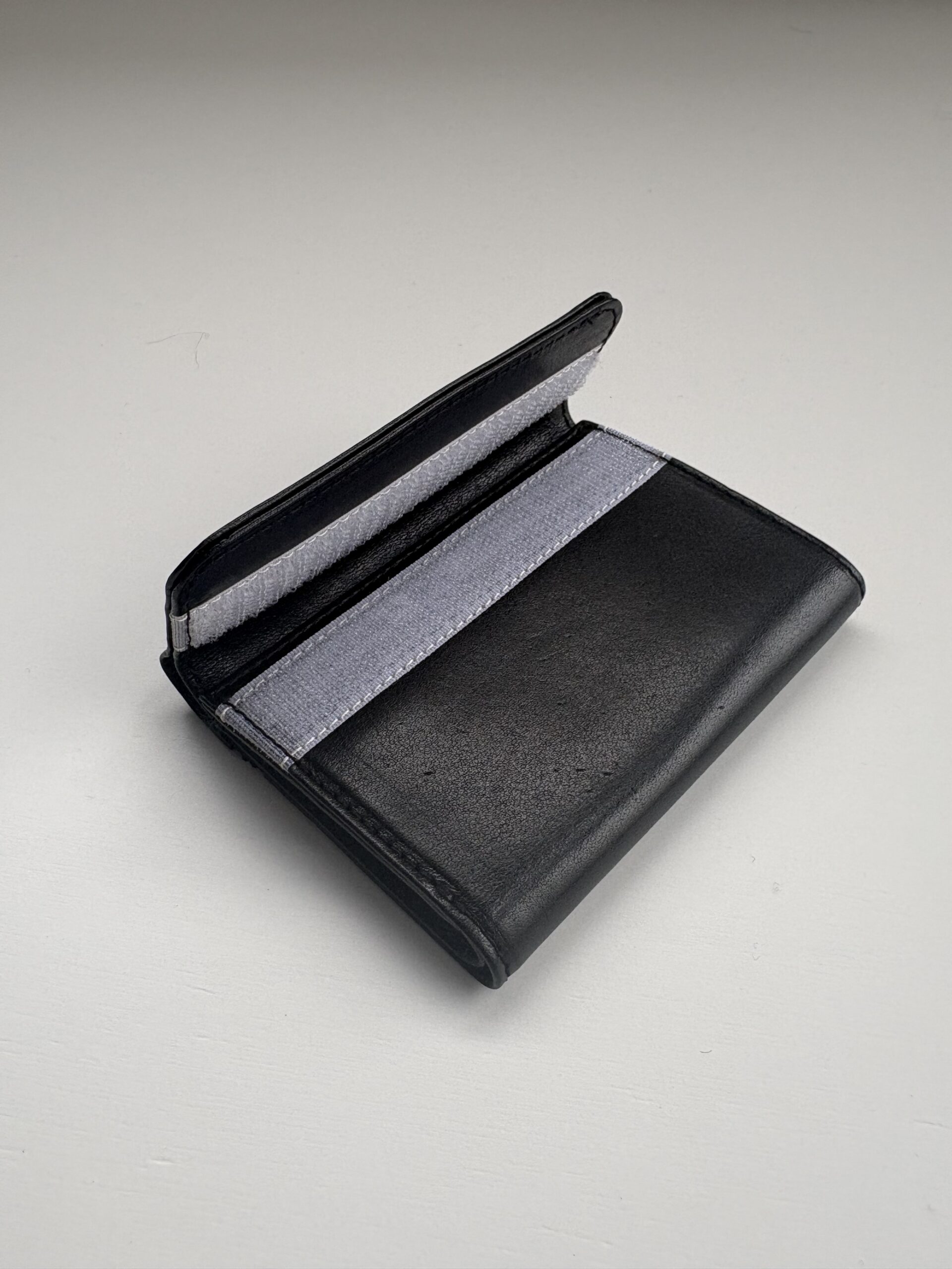 シンプルなレザーウォレットに、ベルクロを合わせました。いわゆるベリベリ財布です。高級感とダサさが合わさると、なんかオシャレに見えません?